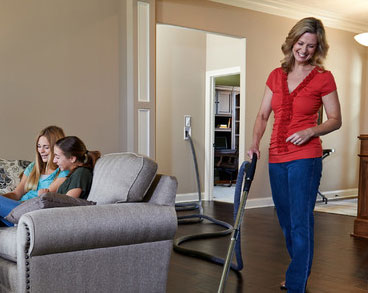 Inlet valves throughout the home let you plug in a lightweight hose – no more lugging a portable unit.